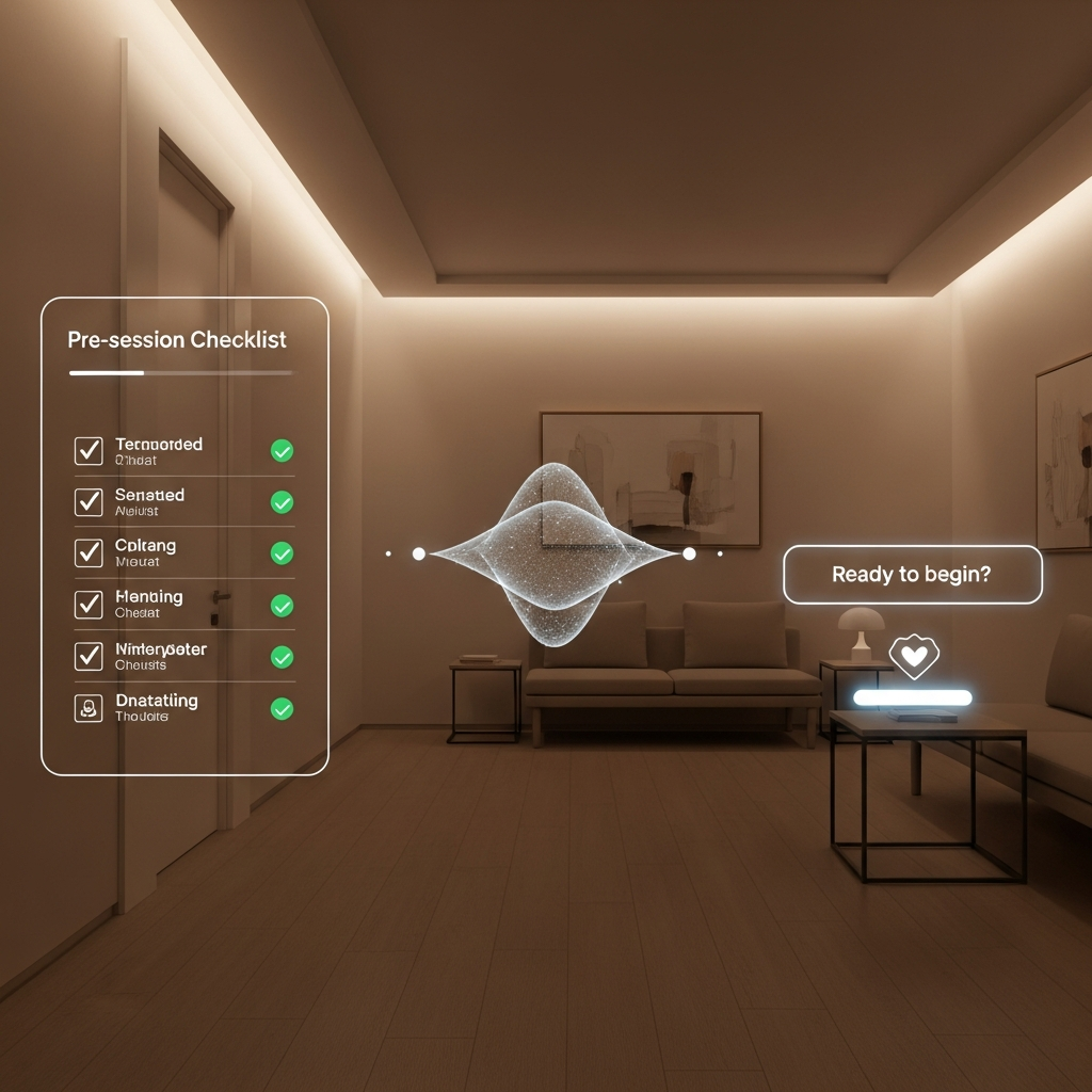 Built-in Wellbeing Checks: Hydration reminders, energy level prompts, and sensory comfort check-ins appear naturally throughout each session.