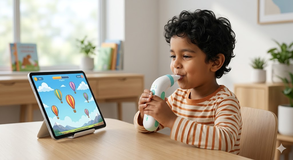 From a first gentle puff to steady, controlled breathing — adaptive games help children build confidence at their own pace.